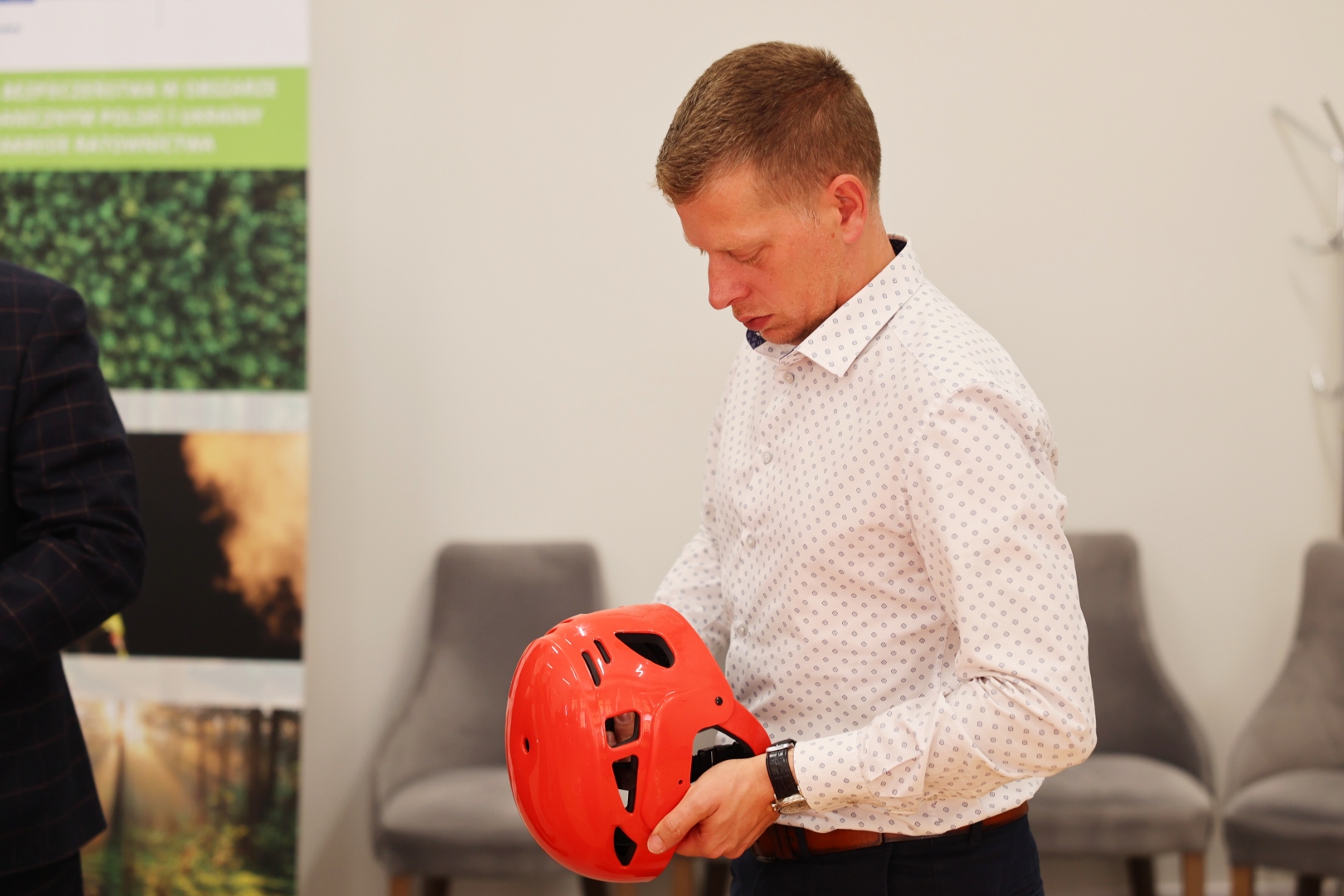 - kaski ochronne zgodne z normami bezpieczeństwa, z ochroną uszu i możliwością dopasowania,