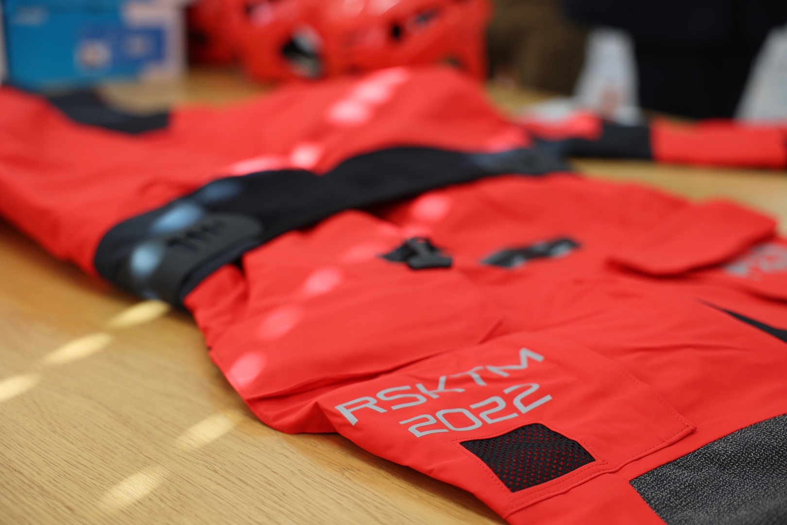 kamizelki asekuracyjne o wyporności 158N, dostosowane do akcji na wodzie i lodzie.