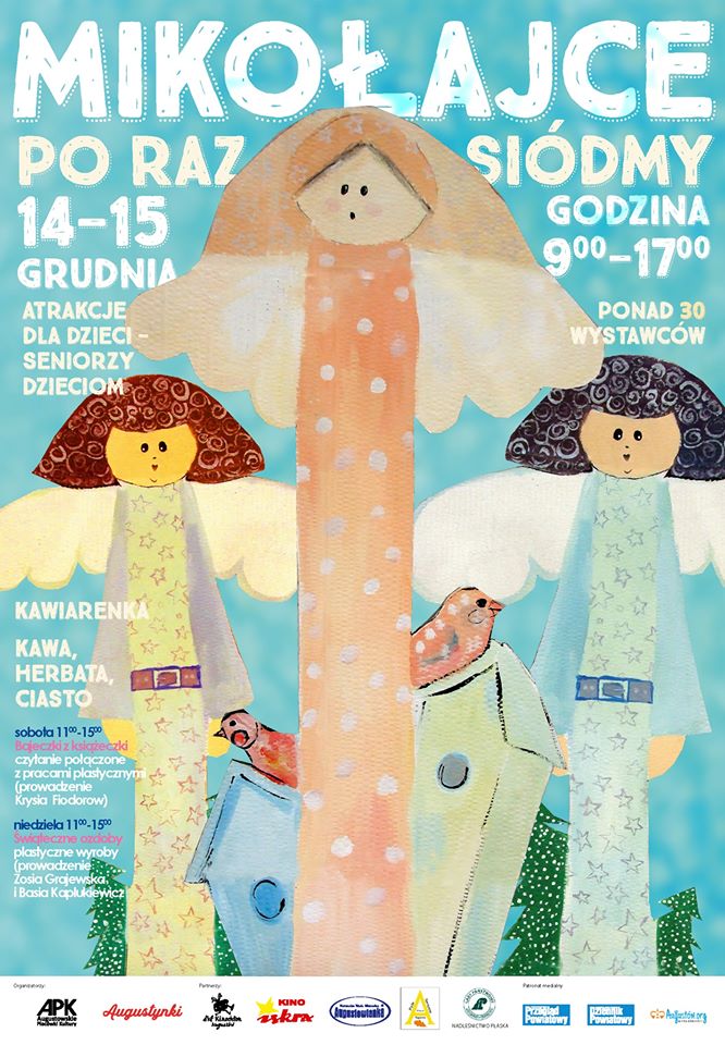 Wysłane przez Ewa Mickiewicz, 11/12/2019Augustowskie Placówki Kultury i Augustynki zapraszają na siódmą edycję Mikołajców, czyli świątecznego kiermaszu rękodzieła – imprezy, która wprowadza w magiczny nastrój i sprawia, że ducha Bożego Narodzenia wyczuwa się już w połowie grudnia. W tegorocznej edycji świąteczną ofertę przygotuje 30 wystawców !